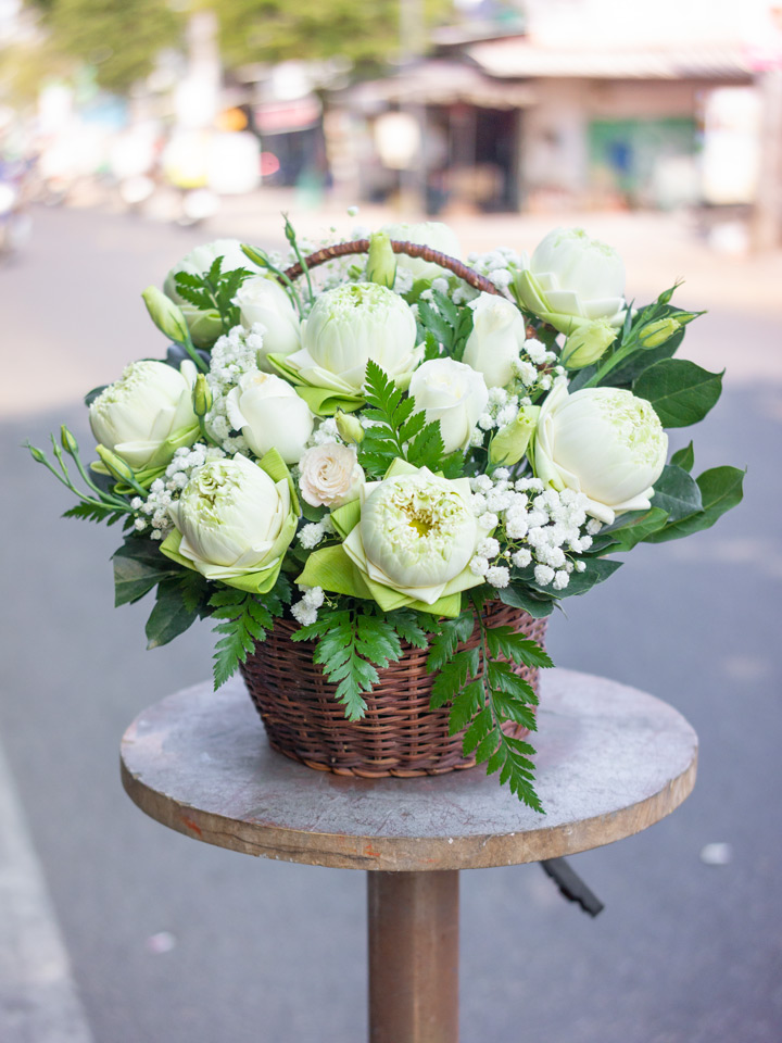 Giỏ Hoa Sen Trắng Chia Buồn HT302